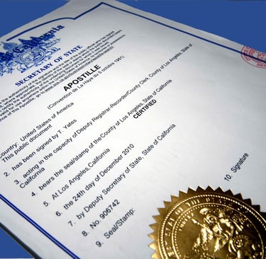 En pocas palabras, la Apostilla es un documento que nace de un Tratado Internacional de la Haya, que avala Internacionalmente los documentos entre los países que son parte del Convenio.